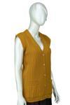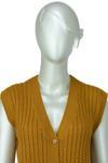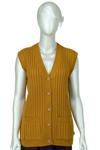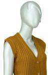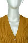 Oppland Kadın Kışlık Pamuklu Triko Klasik Örme Anne Yelek Saç Örgü Model Önden Düğmeli Çift Cepli Hardal Standart