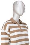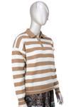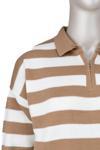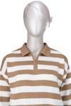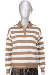 Oppland Kadın Kışlık Triko Kazak Over Size Standart Beden Fermuarlı Yaka Çizgi Motifli Sütlü Kahverengi Standart