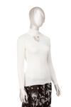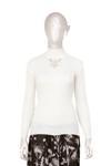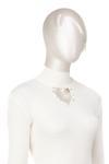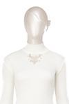 Oppland Kadın Kışlık Yarım Yakalı Ve Taşlı Yaka Açıklığı Bulunan Bedene Oturan Örme Triko Badi Kazak Beyaz Standart