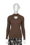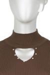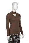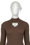 Oppland Kadın Kışlık Yarım Yakalı Ve Taşlı Yaka Açıklığı Bulunan Bedene Oturan Örme Triko Badi Kazak Kahverengi Standart
