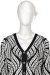 Oppland Kadın Kışlık Yünlü Örme Anne Hırka V Yaka Sümbül Motifli Çift Cepli Düğmeli Likralı Rahat