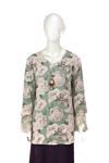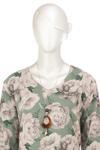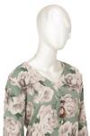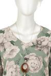 Oppland Kadın Klasik Şifon Anne Bluz Viskoz Kumaş Gül Desenli Kolyeli Uzun Kollu Astarlı Tam Kalıp Yeşil 2XL