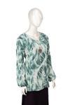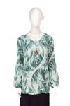Oppland Kadın Klasik Şifon Anne Bluz Viskoz Kumaş Sanat Desenli Kolyeli Astarlı Rahatkesim Tam Kalıp Yeşil 4XL