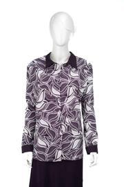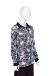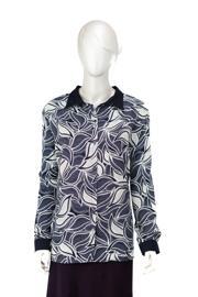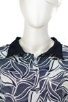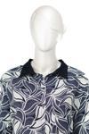 Oppland Kadın Likrasız Kumaş Anne Gömlek Palmiye Desenli Uzun Kollu Gömlek Yaka Vatkalı Tam Kalıp Lacivert 4XL