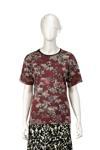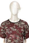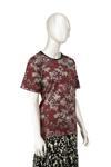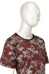 Oppland Kadın Turlu Viskon Penye Kumaş Anne Bluz Bahar Gülü Desenli Kısa Kollu Tam Kalıp Likralı Bordo L