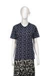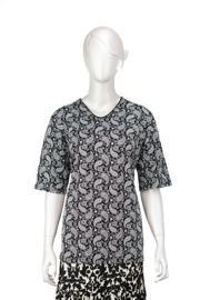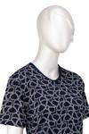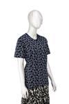 Oppland Kadın Turlu Viskon Penye Kumaş Anne Bluz Bahar Gülü Desenli Kısa Kollu Tam Kalıp Likralı Lacivert 2XL