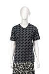 Oppland Kadın Turlu Viskon Penye Kumaş Anne Bluz Bahar Gülü Desenli Kısa Kollu Tam Kalıp Likralı Siyah - Beyaz L