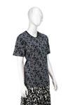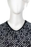 Oppland Kadın Turlu Viskon Penye Kumaş Anne Bluz Damlam Desenli Kısa Kollu Tam Kalıp Likralı Siyah L