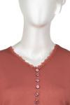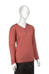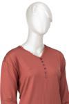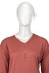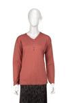 Oppland Kadın Turlu Viskon Penye Kumaş Anne Bluz Şık Fırfırlı V Yaka Normal Kesim Tam Kalıp Likralı Açık Kiremit L