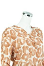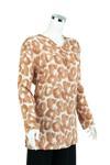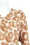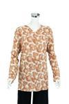 Oppland Kadın V Yaka Uzun Kol Şık Pastel Desenli Rahat Kesim Likrasız Viskon Kumaş Anne Bluz Somon 3XL