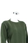 Kadın Yeşil Kışlık Normal Kesim Likralı Pamuklu Kardelen Dokuma Anne Kazak Yeşil XL