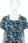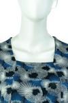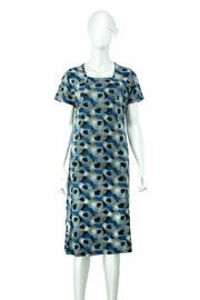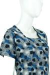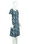 Oppland Kadın Zambak Desenli Kısa Kollu Tam Kalıp Likralı Viskon Kumaş Klasik Diz Altı Elbise Mavi 3XL