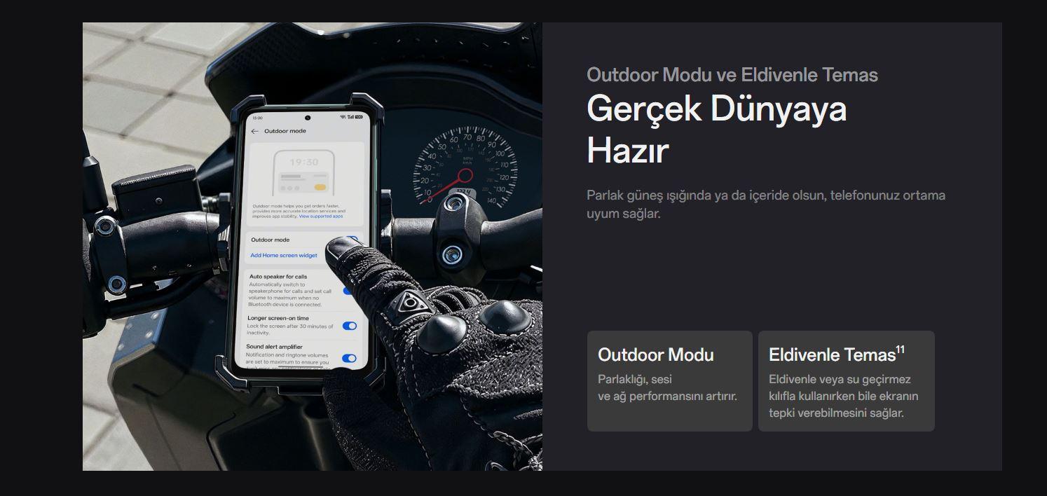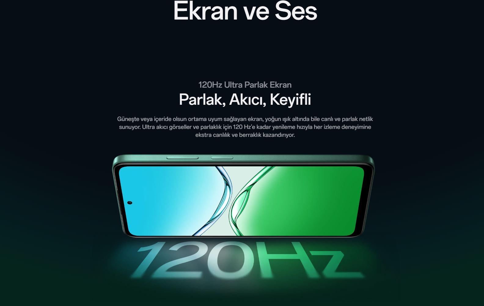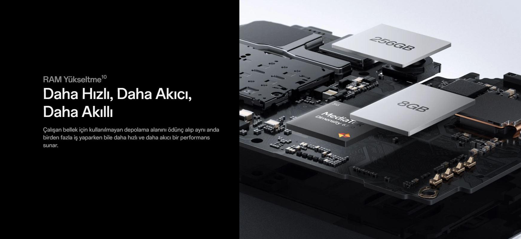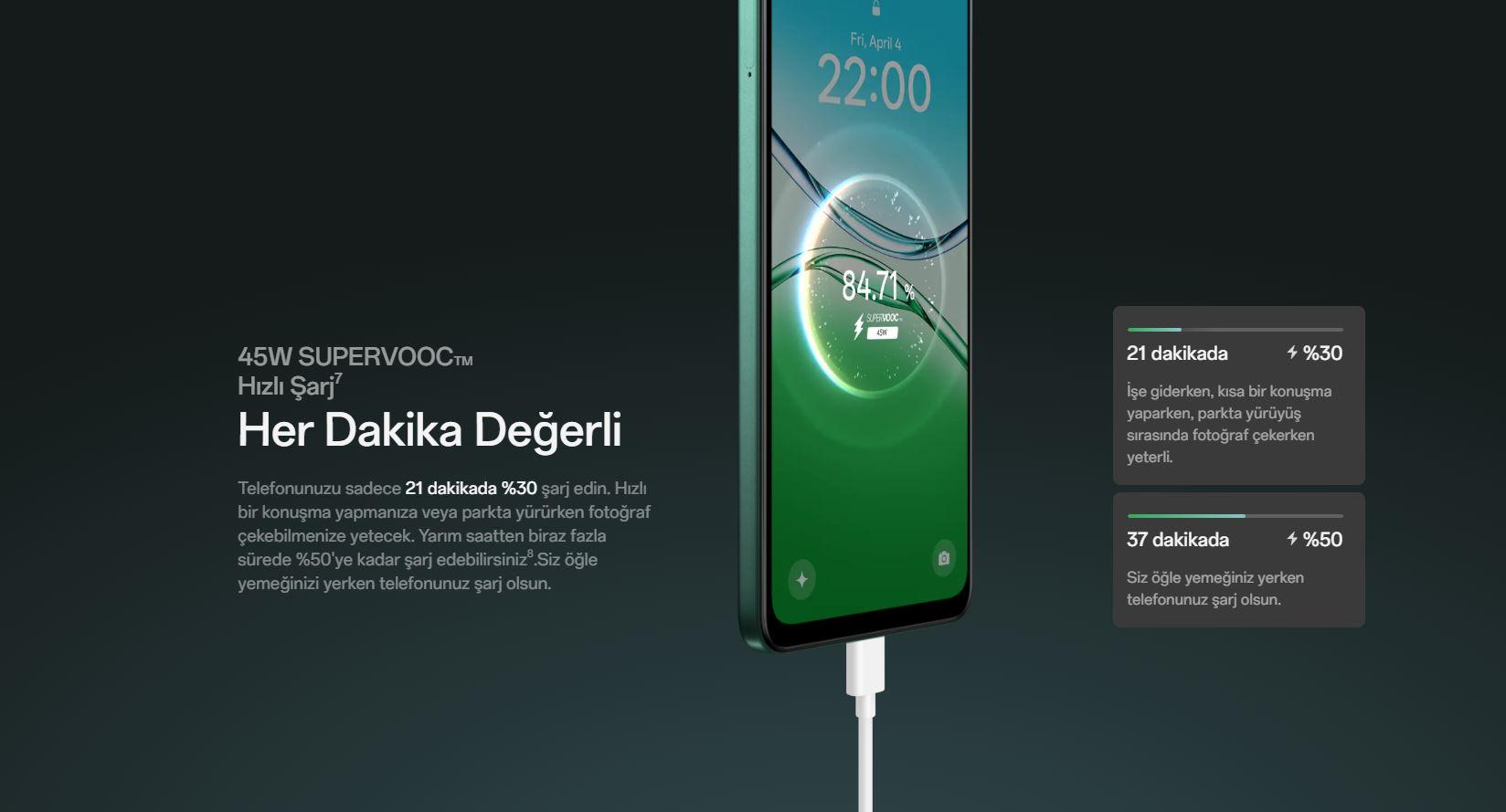 Bir Adım İleride IP65 Su ve Toza Dayanıklılık En Üst Düzey Darbe Direnci 6000mAh Büyük Pil + 45W SUPERVOOCTM Hızlı Şarj 120Hz Ultra Parlak Ekran Gönlünce, Endişesiz Yaşa IP65 standardında test edilen, ve hassas sızdırmazlık özelliğine sahip olan cihaz, toza ve suya dayanıklıdır. Su geçirmez portlar, contalı tepsiler ve sızdırmaz yapışkanlı bileşenler üst düzey koruma sağlar. Güçlü ve Dayanıklı Bu cihaz, ultra sağlam takviyeli camı ve yüksek mukavemetli alaşımlı çerçevesiyle 160%4 daha iyi darbe direncine sahip. En üst düzey standartları ve SGS Testini geçerek sertifikasyon alan bu cihaz her koşulda dayanıklılık için üretildi. Parlak, Akıcı, Keyifli Güneşte veya içeride olsun ortama uyum sağlayan ekran, yoğun ışık altında bile canlı ve parlak netlik sunuyor. Ultra akıcı görseller ve parlaklık için 120 Hz'e kadar yenileme hızıyla her izleme deneyimine ekstra canlılık ve berraklık kazandırıyor. Dış Sesler Dikkatinizi Dağıtmasın Ultra Ses Modu ile %300—'e kadar artırılabilen ses düzeyi sayesinde toplu taşımanın kalabalığı içinde, konserler ve alışveriş merkezleri gibi en gürültülü ortamlarda bile aramaları, bildirimleri ve medyayı net bir şekilde duyacaksınız.  6000mAh Büyük Pil Daha da İyi bir Pil Bu pil, ağırlık yapmadan şarjlar arasındaki süreyi uzatıyor. Yeniden tasarlanan yapısıyla verimliliği artırırken daha hızlı şarj ve daha az ısı sağlıyor. Beş yıl güvenilir kullanım için tasarlanan bu pil, orijinal kapasitesinin %80'ini koruyor.6 45W SUPERVOOCTM Hızlı Şarj7 Her Dakika Değerli Telefonunuzu sadece 21 dakikada %30 şarj edin. Hızlı bir konuşma yapmanıza veya parkta yürürken fotoğraf çekebilmenize yetecek. Yarım saatten biraz fazla sürede %50'ye kadar şarj edebilirsiniz8.Siz öğle yemeğinizi yerken telefonunuz şarj olsun.