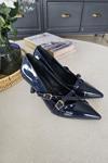 Asya Bilek Şerit Taşlı Çapraz Bantlı Kısa Topuklu Klasik Kadın Topuklu Ayakkabı - Image 1