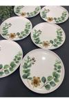- Bulaşık makinesinde kolayca yıkanabilir yapısı ile pratik kullanım sunar.; - Gıda temasına uygun malzemesi sayesinde güvenle kullanabilirsiniz.; - Mikrodalgada güvenle kullanılabilme özelliğiyle zaman kazandırır.; - 6 adet pasta tabağı, misafirlerinizi ağırlarken şıklığından ödün vermez.; - Çiçek desenleriyle süslenmiş tasarımıyla sofralarınıza renk katar.; - Yuvarlak şekliyle standart tabak ölçülerine uyum sağlar ve her türlü servis gereksinimini karşılar.; - Türkiye'de üretilmiş olup yerel üretim avantajını yansıtır.; - Yüksek kaliteli seramik materyali sayesinde uzun ömürlü kullanım vaat eder.; - 20 cm çapındaki geniş yüzeyi ile büyük porsiyonların rahatlıkla servis edilmesine olanak tanır.