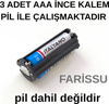 Kuru Pil Uyumu: 3 adet AAA (ince kalem) kuru pil ile çalışır. Piller kutuya dahil değildir; bu sayede dilediğiniz marka ve kalitede pil kullanma esnekliğine sahip olursunuz. (Şarj edilebilir pillerle de uyumludur.)