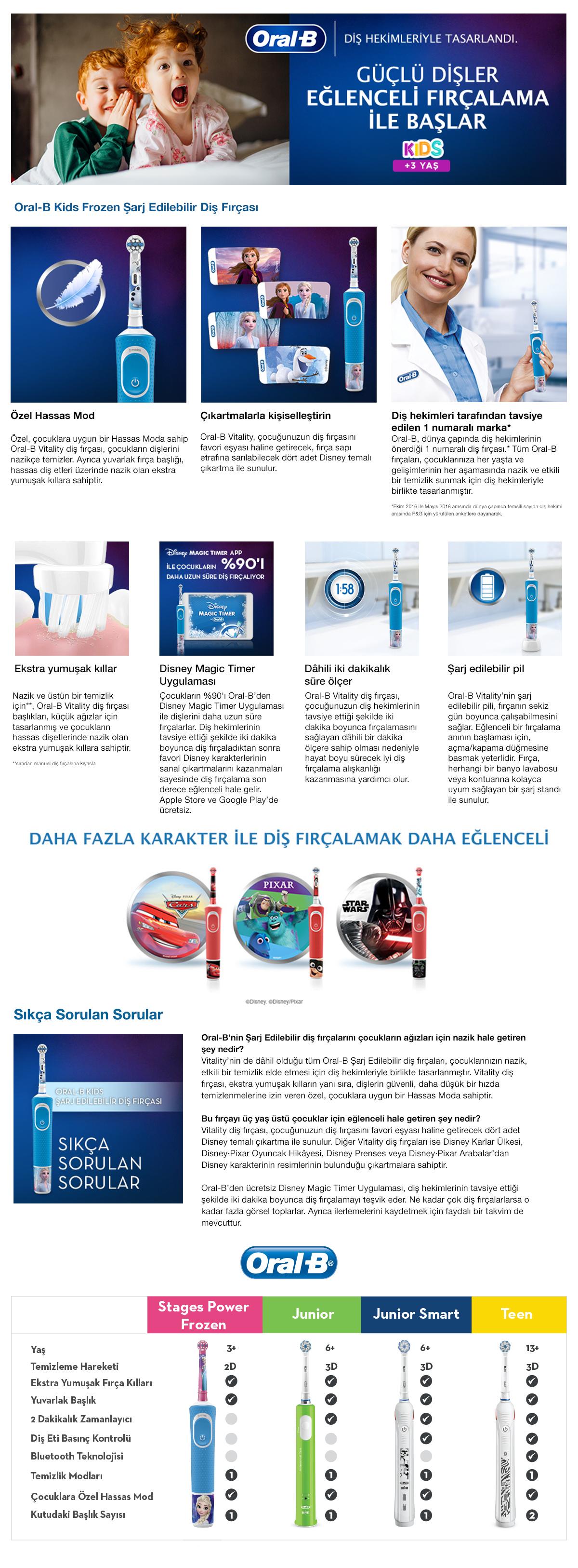 Oral-B Çocuklar İçin Şarj Edilebilir Diş Fırçası D100 Vitality Frozen Özel Seri + Seyahat Kabı