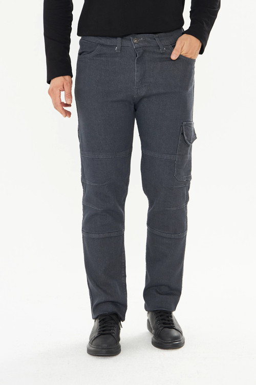 Yanlarda iki yarma cep, arkada cüzdan, yanda komando ve metre cebi olmak üzere toplamda beş cep vardır.
