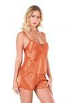 Oranj Saten Babydoll Şort Takımı 9126