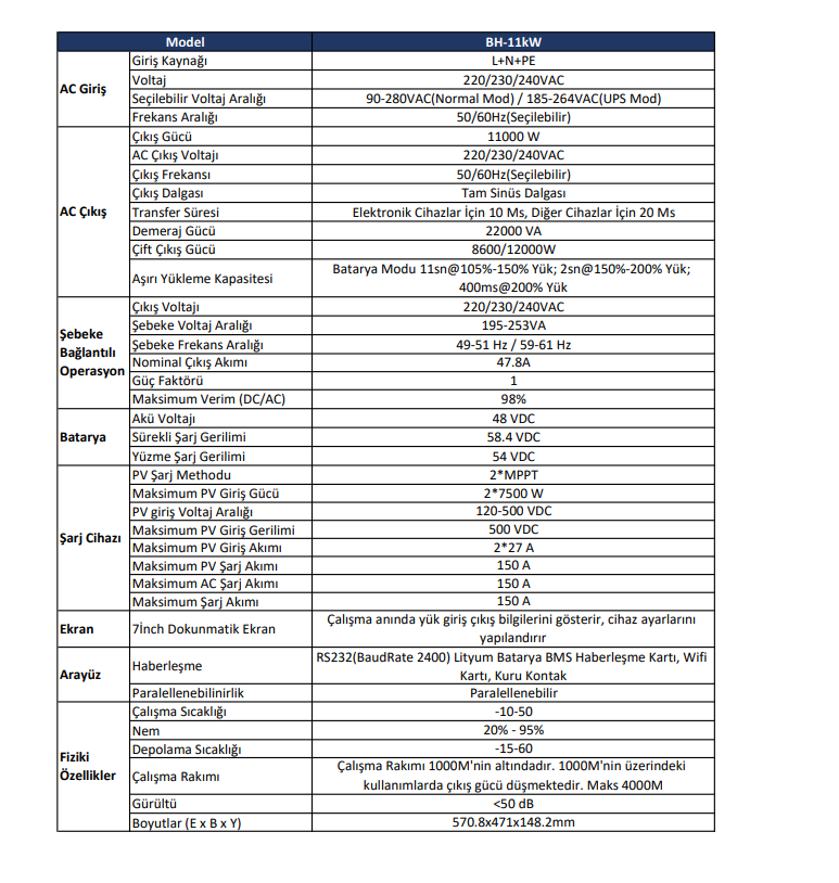| Orbus 48 V 11 kW Solar Inverter (BH-11 kW) | 1 Adet |