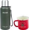 Bu sette bir adet 500 ml termos ve bir adet emaye kırmızı camping kupa bulunmaktadır.