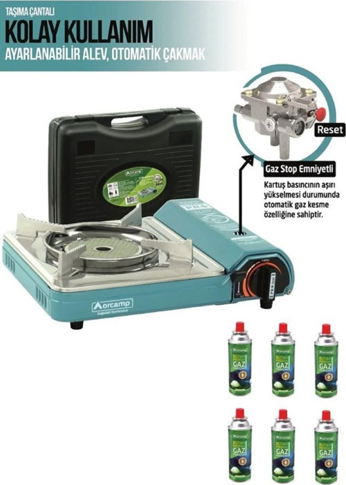 Orcamp Pro Portatif Seramik Kamp Ocak Ck-508 Gaz Stop Emniyetli 6 Adet 227 Kartuş