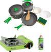 Bu sette bir adet portatif ocak, bir adet kartuş ve 3 parça tencere seti bulunmaktadır.