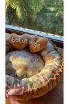 Ören Pati Pet Store İsme Özel Yastıklı Peluş (55 Cm Büzgüsüz) Pembe Yuvarlak Simit Yatak Kedi Köpek Yatağı