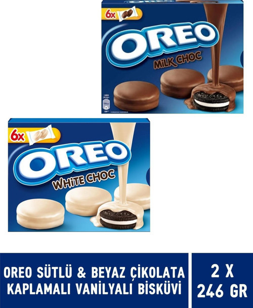 Oreo Sütlü Çikolata Kaplamalı Vanilyalı Bisküvi 246 gr & Oreo Beyaz Çikolata Kaplamalı Vanilyalı Bisküvi 246 gr - 2 Adet