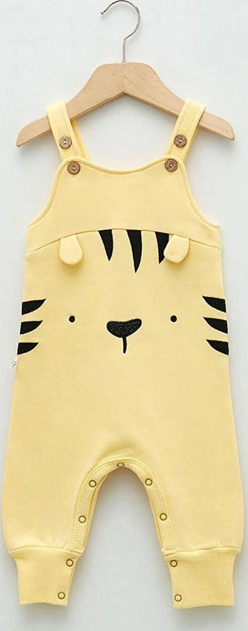 OrganicEra Organik Kedi Nakışlı Salopet Tulum ,Sarı