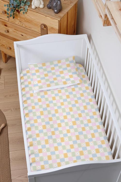 Markkombin Organik Bebek Boy Lastikli Çarşaf Seti - Limon Çiçeği