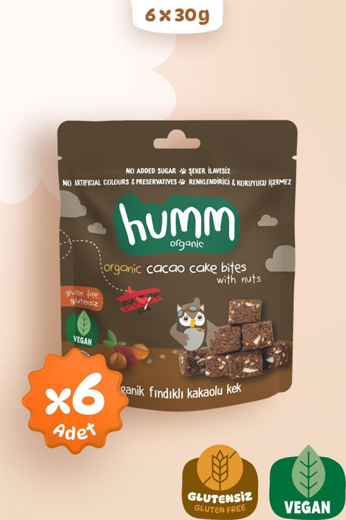 Organik Glutensiz Vegan Kakaolu ve Fındıklı Kek Atıştırmalık Paketi - 6 adet