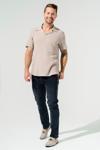 D's Damat Comfort Bej Düğmeli Yaka Rahat Kesim Keten Görünümlü %100 Pamuk Gömlek - Image 1