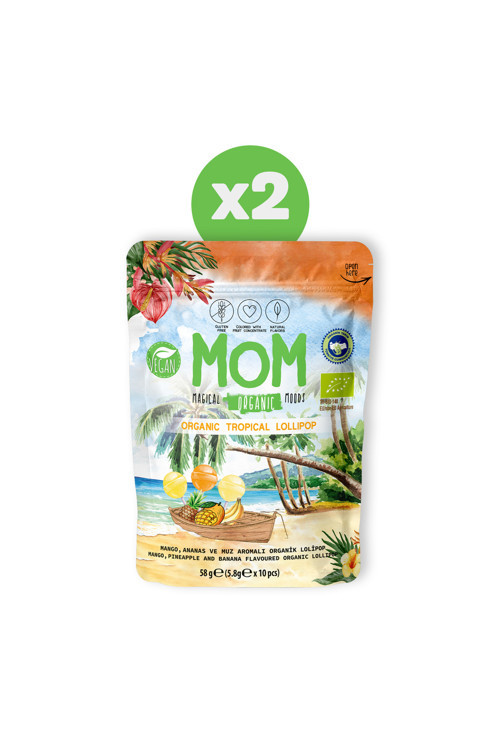 Mom Tropikal Organik Lolipop – Ananas, Muz, Mango Tropik adaların taptaze meyveleri şimdi tek pakette!