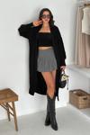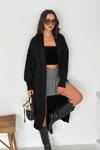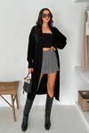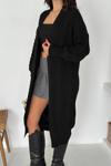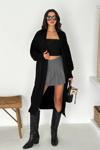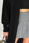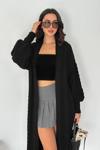 Örgü Detaylı Uzun Triko Hırka Siyah