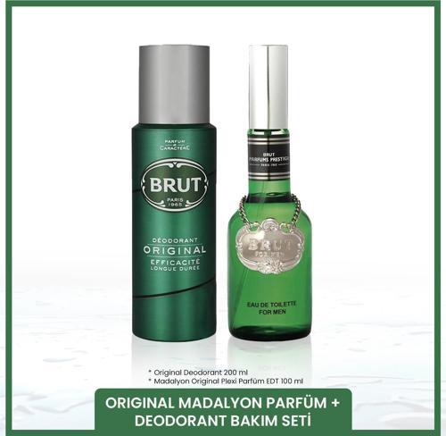 Brut Original Erkek Bakım Seti Madalyon Plexi Parfüm EDT 100 ml, Deodorant 200 ml