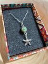 Gümüştel El Sanatları Orijinal Doğal Taş Zümrüt Taşı Kolye Zincir Dahil Deniz Yıldızı Sallantı Detaylı Aşk Taşı Zümrüt