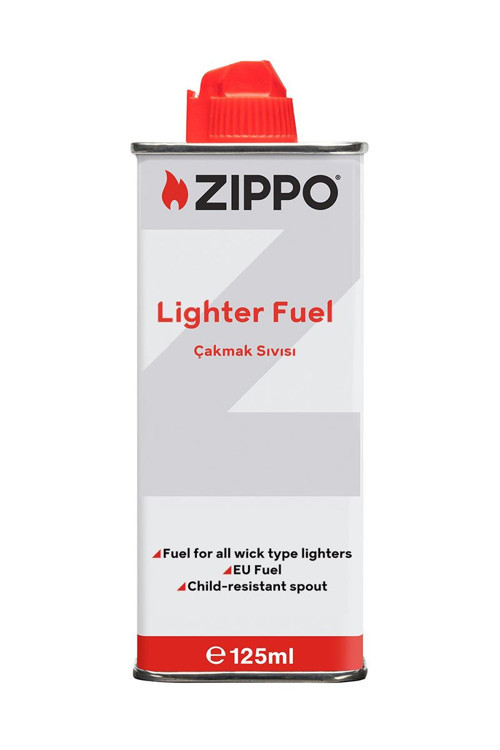 Zippo Çakmak Benzini. 125 ml. dir. Özel kilitli yapısı sayesinde dökülme yapmaz. Made in Germany. Zippo Çakmak ortalama = 3.5g 0.1378 oz 4ml benzin ile dolar .