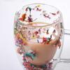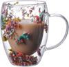 Çift camlı kupa bardak, şık ve dayanıklı bir tasarıma sahiptir. İçerisinde özenle yerleştirilmiş kurutulmuş orijinal çiçekler, bardağa görsel bir estetik katmaktadır.