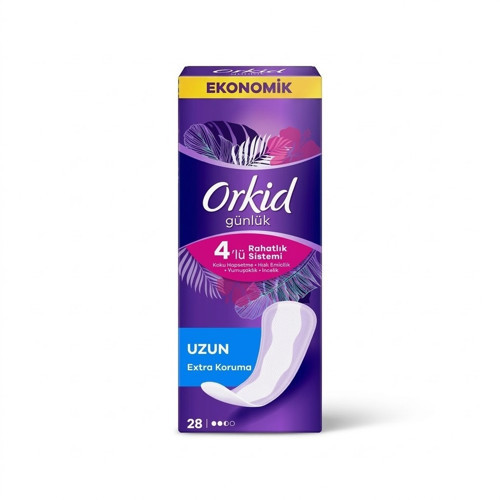 Orkid Günlük Extra Koruma, gün boyu süren ferahlık ve üstün koruma arayanlar için özel olarak tasarlanmıştır. Uzun yapısı ve gelişmiş emici bölgesi sayesinde akıntıları hızla hapsederken, pamuksu yumuşaklığı ile cildinizde yokmuş hissi uyandırır. Her an kendinizi temiz, kuru ve güvende hissetmeniz için geliştirilen bu ürün, günlük hijyen rutininizin vazgeçilmez bir parçasıdır.
