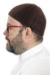 İhvan Online Orlon Örme Kışlık Yün Bere Takke Baklava Desen Kahverengi