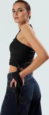 Rahatlığı ve şıklığı bir arada arayanlar için ideal bir seçenek olan bu siyah bluz, yaz aylarında gardrobunuzun kurtarıcı parçası olacak. Yüksek kaliteli örme kumaştan üretilen bluz, gün boyu nefes alabilir bir konfor sunarken, aynı zamanda şık ve modern bir görünüm yaratıyor. Halter yaka tasarımı ve krop boy kesimiyle dikkat çeken bluz, feminen ve zarif bir tarz oluşturmanıza yardımcı olacak. Fitted kalıbı ise vücudunuza kusursuz bir şekilde oturuyor.