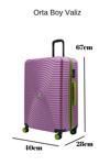 · Orta Boy Valiz Ölçüleri: Boy: 67 cm, En: 40 cm, Derinlik: 28 cm Ağırlık: 3,1 kg Hacim:70 lt Kapasite: 20 kg