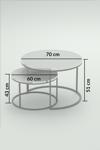 Ürün ölçüleri; ; ; Büyük orta sehpa 70 çap yükseklik:51 ; ; Küçük orta sehpa 60 çap yükseklik:43 ; ; Üst tabla 1.kalite yonga levhadır ; ; Kenarları 1. sınıf özel üretim PVC bant ile kaplıdır. ; ; Kullanılan malzeme TSE, Avrupa Birliği EN, ISO 9001 ve FSC belgelerine sahiptir. ; ; Ayaklar 1.kalite1*20 15*15 profil ; ; Ürün ayak boyası 1.sınıf statik boyadır ; ; Paketlerde kolay kurulum için gerekli tüm vida ve aksesuarlar bulunmaktadır. ; ; Ürünün montajı oldukça kolaydır. Kurulum yapılacak yerler nokta ile gösterilmiştir. Vidalaması sizlere aittir. Basit el aletleri ile kolayca kurulum yapabilirsiniz.(Tornavida ya da matkap) ; ; Hızlı ve hatasız kurulum için parça üzerinde kurulum şeması ile uyumlu parça bulunmaktadır. ; ; Ürünlerimiz 1.kalite dopel kutuda özenle paketlenip tarafınıza gönderilmektedir. Kargoda her hangi bir hasar alma durumunda kurulum yapılmadan ücretsiz olarak değişim ve iade hakkına sahipsiniz. ;