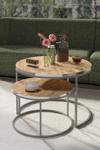 Ürün ölçüleri; Büyük orta sehpa 70 çap yükseklik:51 Küçük orta sehpa 60 çap yükseklik:43 Üst tabla 1.kalite yonga levhadır Kenarları 1. sınıf özel üretim PVC bant ilekaplıdır. Kullanılan malzeme TSE, AvrupaBirliği EN, ISO 9001 ve FSC belgelerine sahiptir. Ayaklar 1.kalite1*20 15*15 profil Ürün ayak boyası 1.sınıf statik boyadır Paketlerde kolay kurulum için gerekli tüm vidave aksesuarlar bulunmaktadır. Ürününmontajı oldukça kolaydır. Kurulum yapılacak yerler nokta ile gösterilmiştir.Vidalaması sizlere aittir. Basit el aletleri ile kolayca kurulumyapabilirsiniz.(Tornavida ya da matkap) Hızlı ve hatasız kurulum için parça üzerindekurulum şeması ile uyumlu parça bulunmaktadır. Ürünlerimiz 1.kalite dopel kutuda özenlepaketlenip tarafınıza gönderilmektedir. Kargoda her hangi bir hasar almadurumunda kurulum yapılmadan ücretsiz olarak değişim ve iade hakkınasahipsiniz.