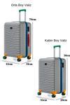 Orta Ve Kabin Boy 2'li Valiz Seti %100 Polikarbon Valiz 4x2 Teker Gri 1088