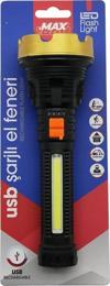 Alfa aksesuar 03 Orta=19cm 2in1= Osl Led - Cob Led Usb Şarjlı El Feneri 3-kademe Işık - Flaşör Şarj Gösterge