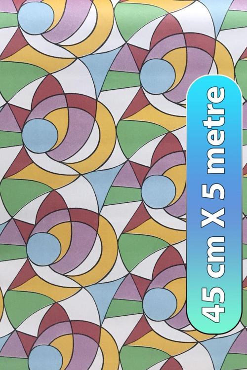 Renkli Vitray Desenli Kendinden Yapışkanlı Cam Folyo Filmi Balkon Kaplama Ofis Duşakabin 45 cm x 5 m