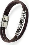 Çelik Detaylı Kahve Rengi Deri Erkek Bileklik