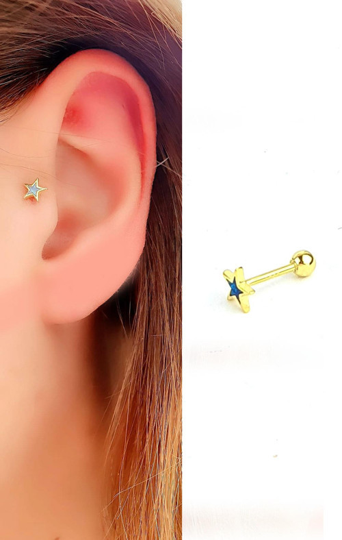 Opal Taşlı 925ayar Gümüş Üzerine Altın Kaplama Yıldız figürlü Tragus Kıkırdak Piercing